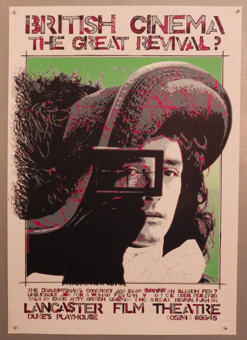 Angus: British Cinema The Great Revival? poster. Dukes Film Theatre, Lancaster 1980’s.  64 x 45cms (c.25 x 18 inches).  Corner pinholes.