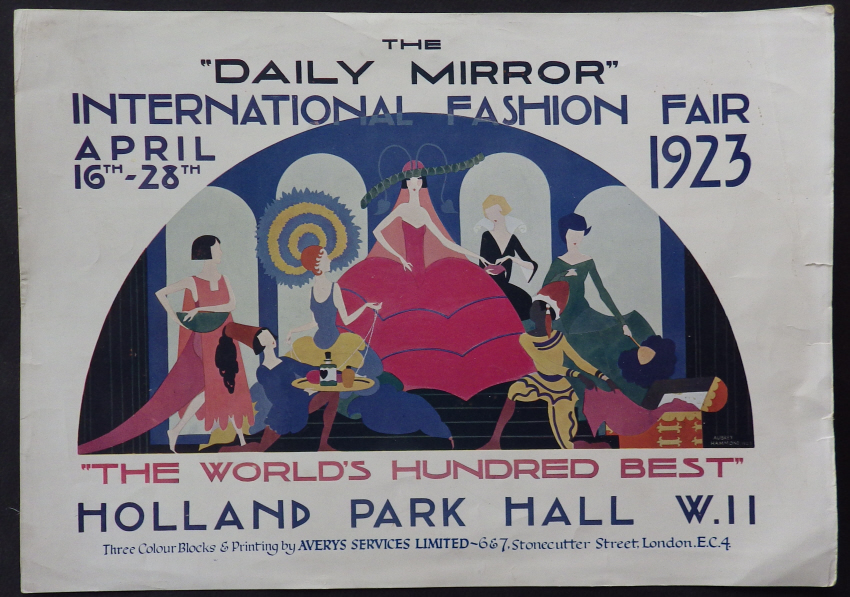 Aubrey Hammond: Print of a poster for the International Fashion Fair 1923. Presumably produced as an advert for the printers Avery Services. c. 1923. 21 x 29.5cms. Creasing and 1cm tear to right hand side.