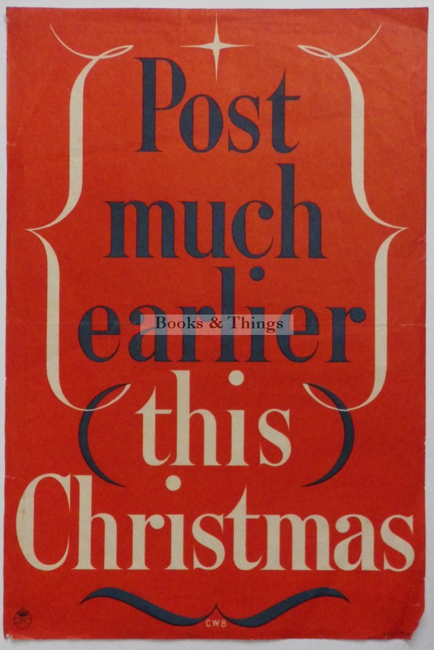 C. W. Bacon: Post Much Earlier this Christmas poster 1942. 38 x 25.5cms (15 x 10 inches). Slight corner losses at bottom; creases.
