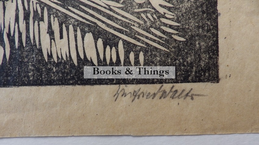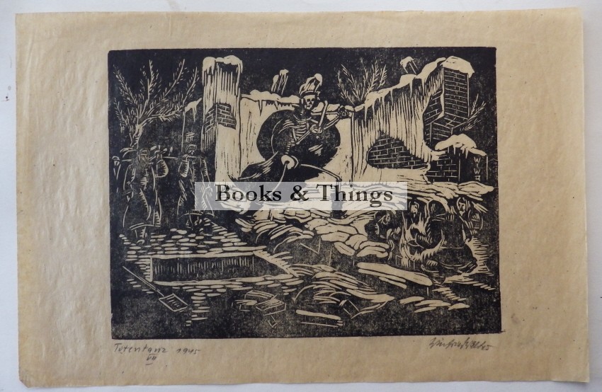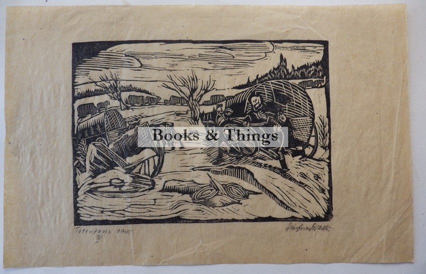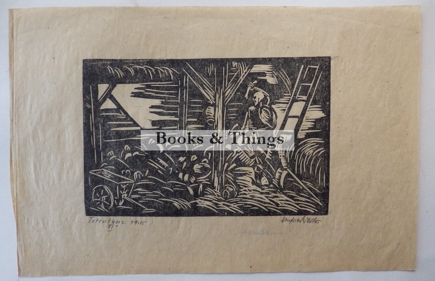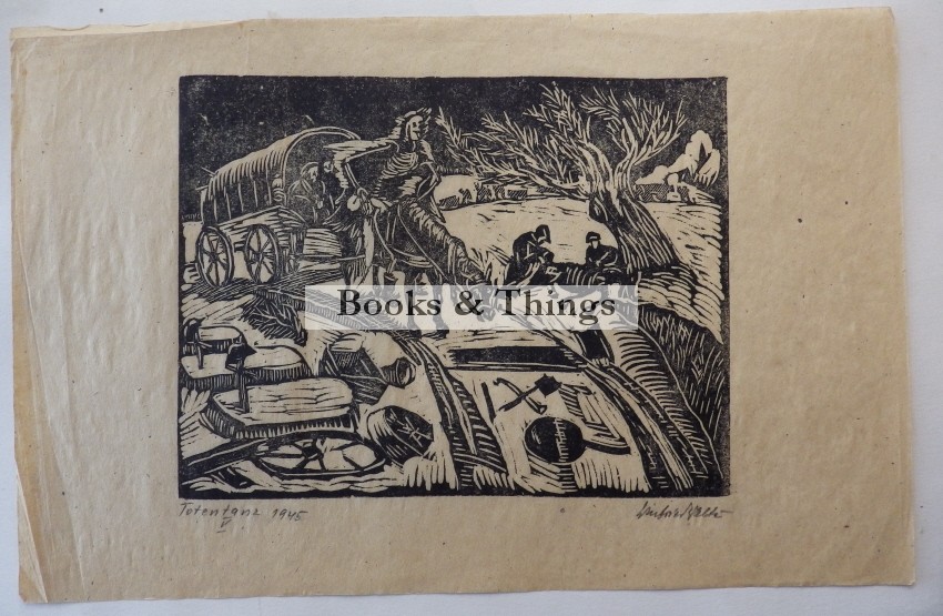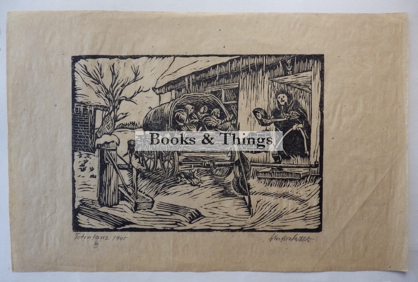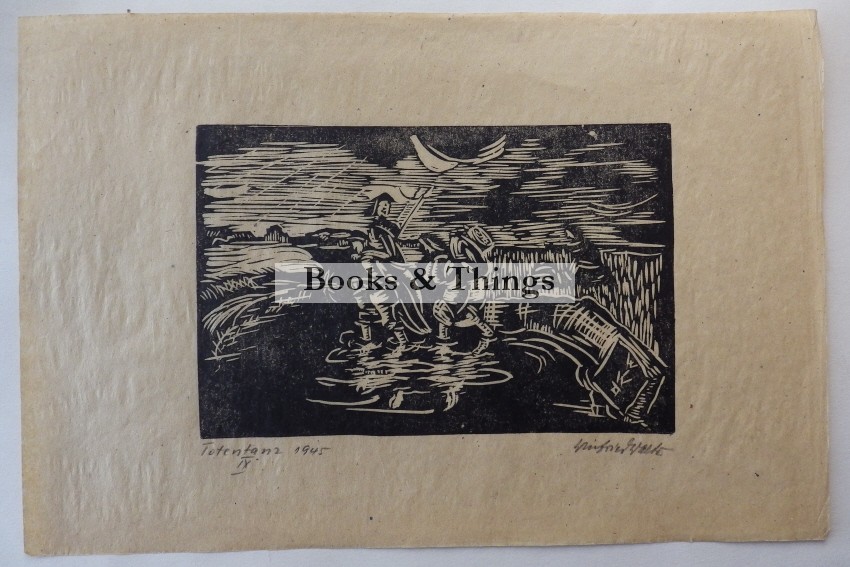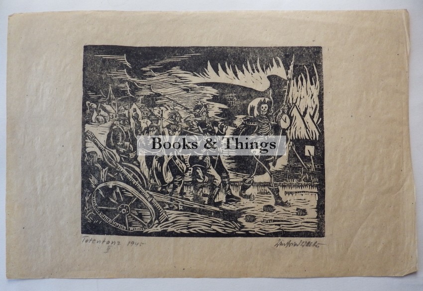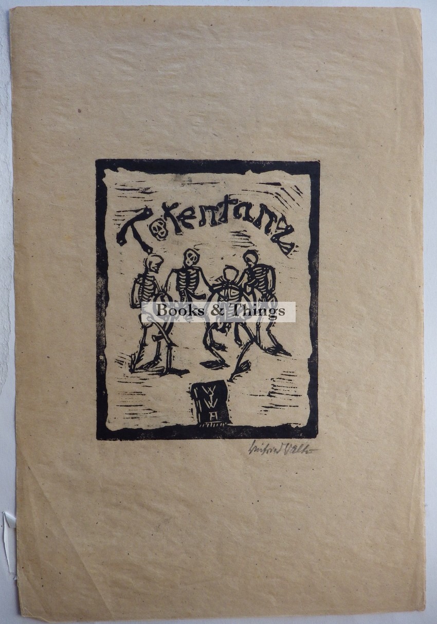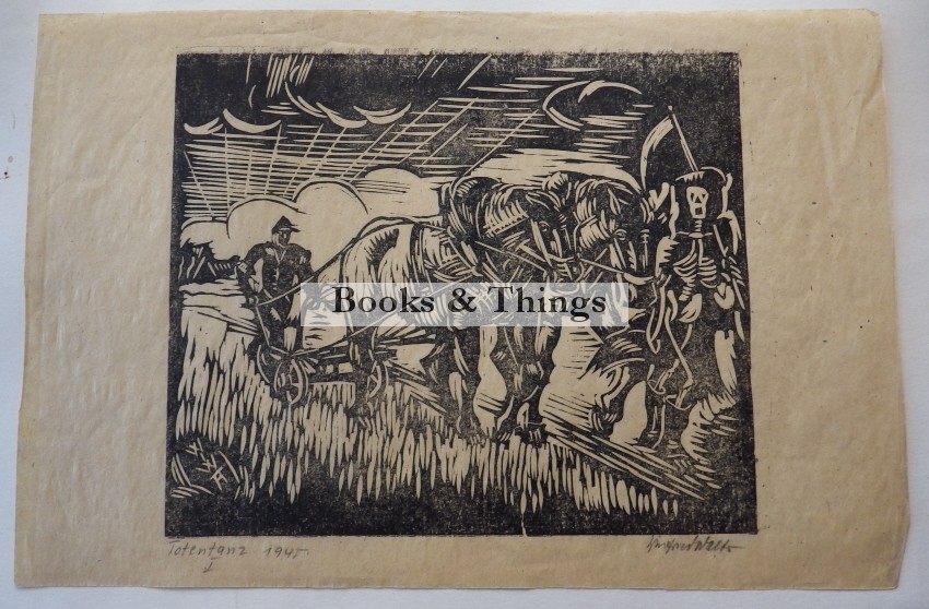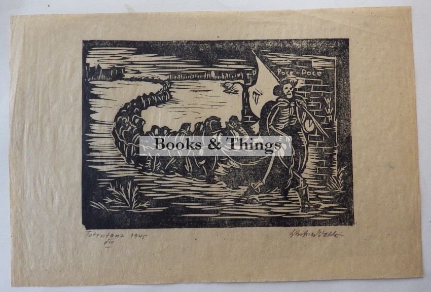 Winifried Walker(?): Totentanz (Dance of Death). 10 loose woodcuts + title page. Signed in pencil & dated 1945. 38.5 x 25.5cms. Can’t make out the signature but this is my best guess. Any suggestions welcome!