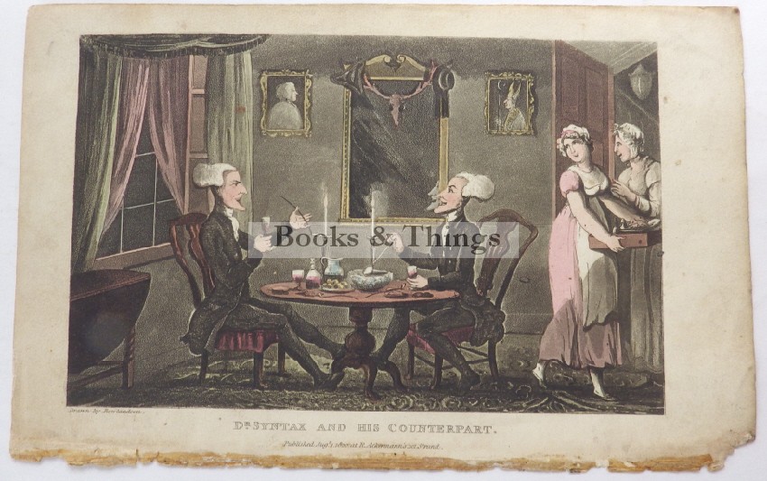 Thomas Rowlandson: Dr Syntax and his Counterpart. Hand-coloured lithograph; 230 x 140mm; Ackermann Aug. 1820.