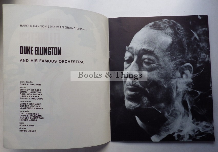 Duke Ellington: Programme c. 1960’s. Illustrated with photos. 16 pages, 260 x 210mm. Presented by Harold Davison & Norman Granz. Featuring Johnny Hodges, Cootie Williams, Paul Gonsalves etc.