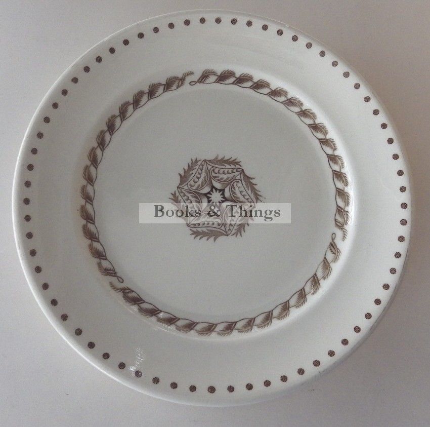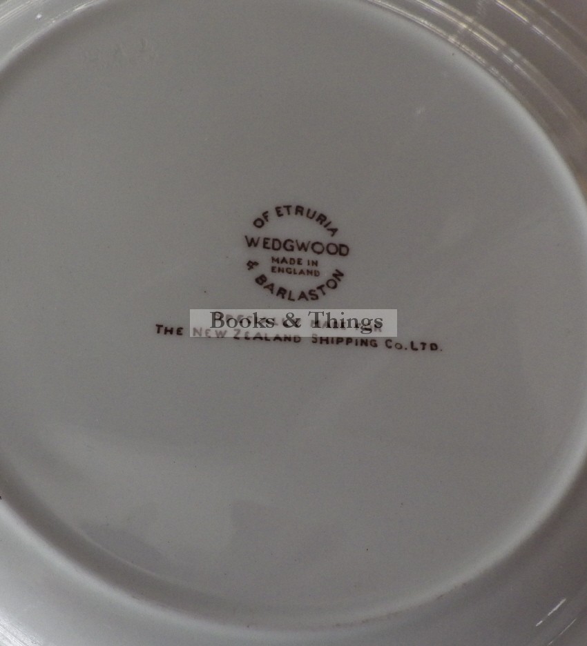 Edward Bawden: Wedgwood plate for New Zealand Shipping Company, c.1947. 22cms diameter. Has a small green blemish which is under the glaze.