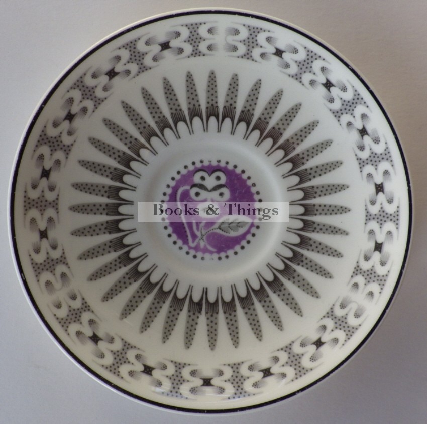 Edward Bawden: Porringer & saucer in Heartsease pattern. Produced by Wedgwood for Orient Line shipping company 1952. Porringer 10.5cms diameter, 8cms high, saucer 15cms diameter.