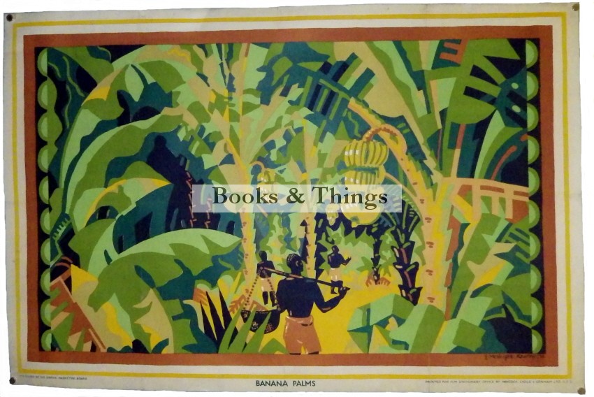 Edward McKnight Kauffer: Banana Palms. Empire Marketing Board poster dated 1926. 102 x 153cms (40 x 60 inches). Displayed Sept.-Oct. 1927 (the Empire Marketing Board had their own specially designed frames in 1700 locations). Folds, mounted on japon paper. Some small restorations at fold intersections and one corner, 7cm marginal tear at bottom on one of the folds. S. Constantine: Buy & Build the advertising posters of the Empire Marketing Board plate 18. A rare poster.