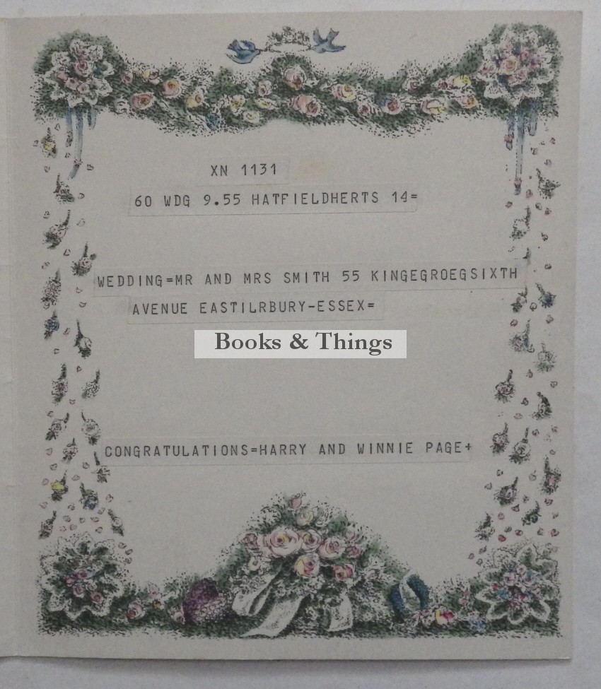 : Wedding Telegram. Folded card 220 x 190mm. 1957.