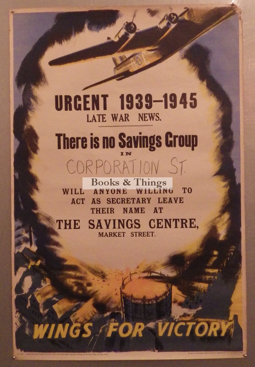 Harold Pym: World War Two poster ‘Wings for Victory’. 74 x 49.5cms (29 x 19.5 inches). Slight loss top right corner. National Savings.