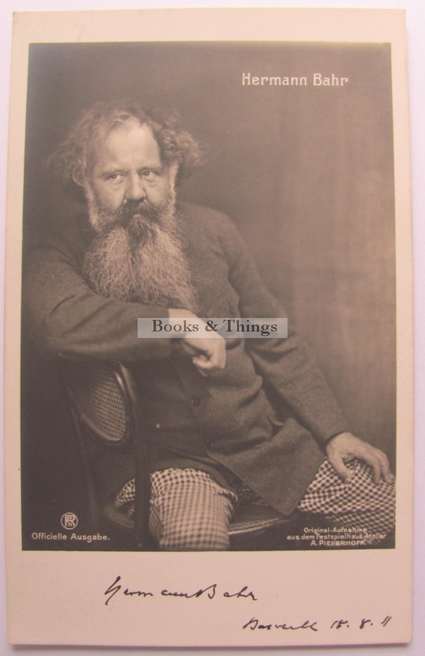 : Signed photograph, dated 18th August 1911. 140 x 90mm.