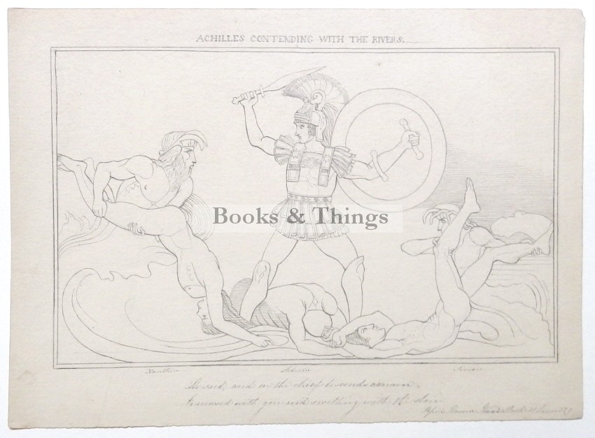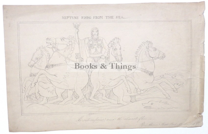 After John Flaxman: Neptune rising from the sea. Pen & ink. 25 x 40cms. For Homer’s Iliad. Frayed at right hand edge.
