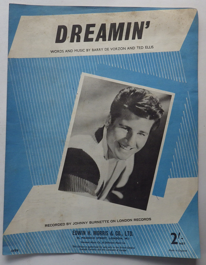 Johnny Burnette: Dreamin’ sheet music 1960. Folded sheet, 280 x 215mm. Edwin Morris & Co. A little marked.