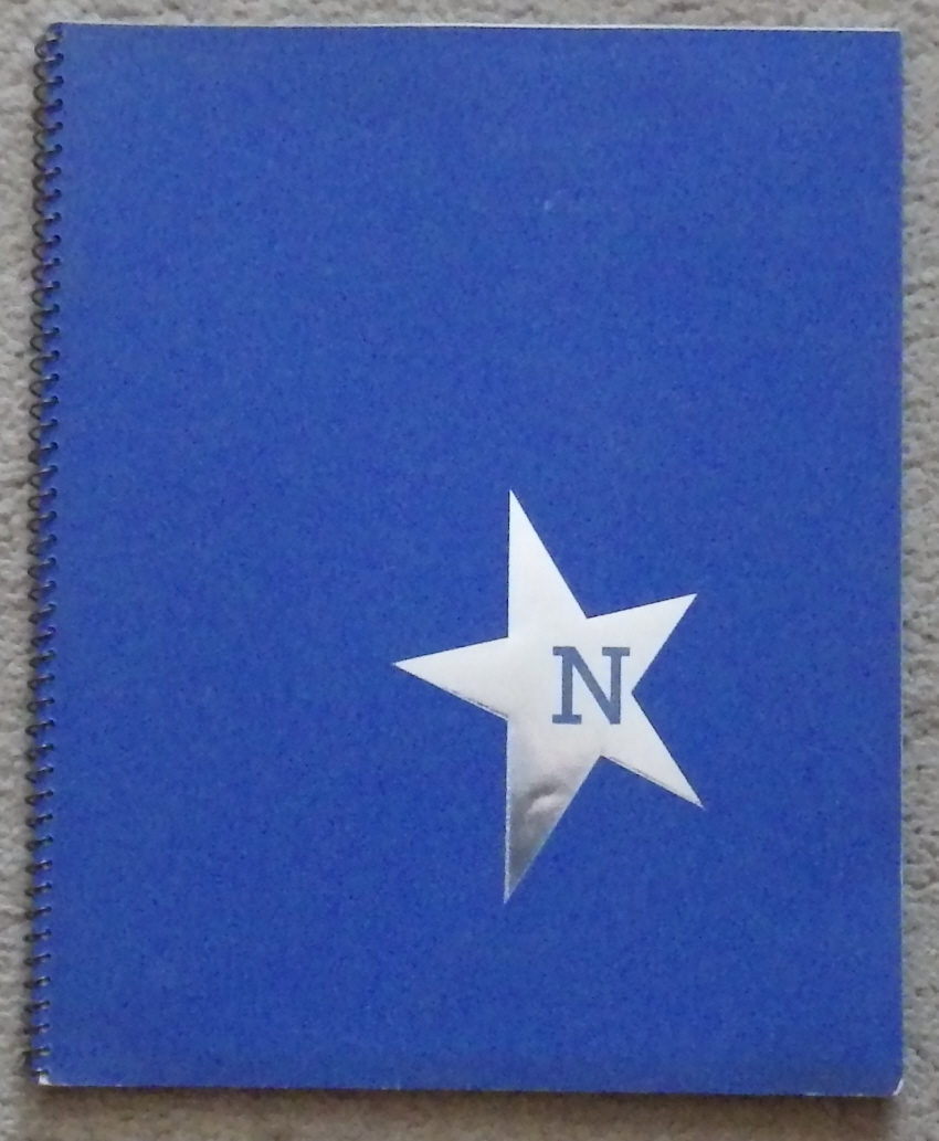 Nicolas Wine List 1931: Double page lithograph by A.M. Cassandre & other line illustrations. 24 pages, 230 x 185mm; spirally bound blue card with star cut out to reveal silver below. Slight darkening to lower edge. A bright copy with none of the oxidization of the silver that usually takes place.