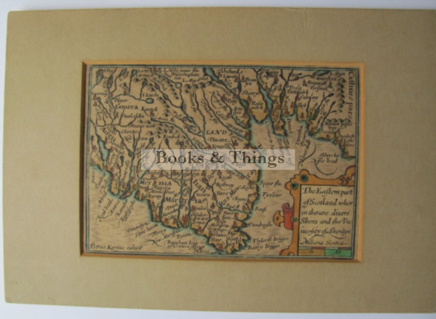 Pieter van der Keere: Eastern Scotland hand-coloured map c. 1627. In mount 20 x 14cms.