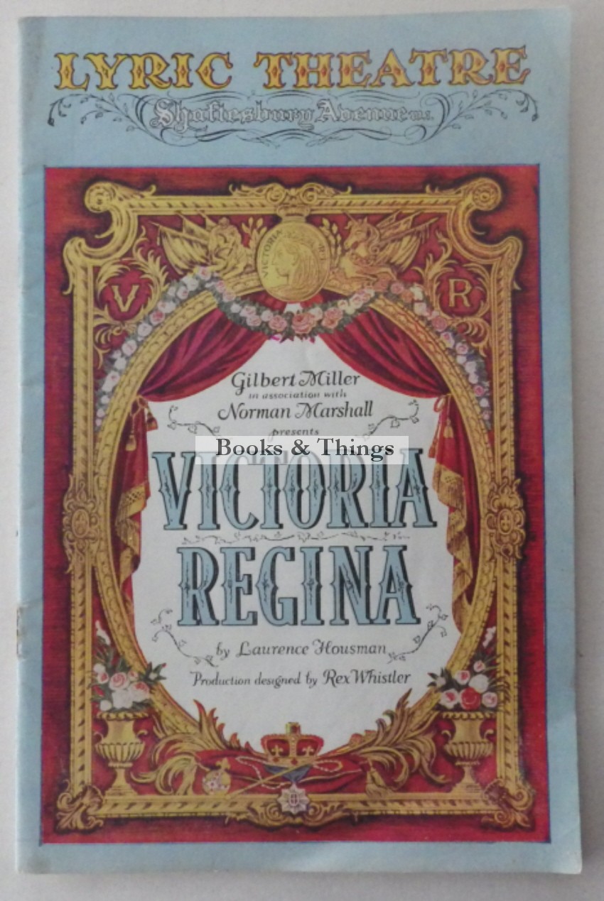 Laurence Housman: Victoria Regina programme with cover by Rex Whistler. Photo illustrations; 24 pages, 215 x 140mm pictorial wrappers by Whistler (light crease lower right corner).