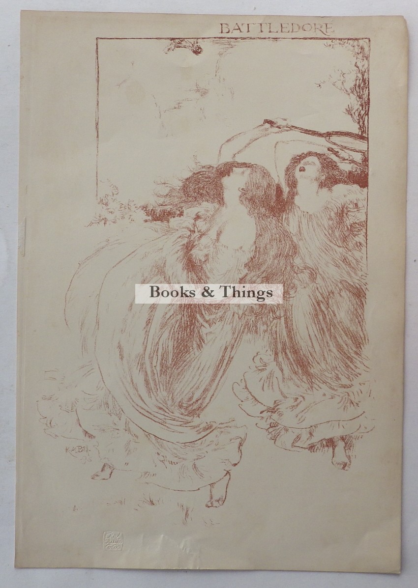 Robert Anning Bell: Original lithograph Battledore. 285 x 190mm. As published in The Studio March 1897.