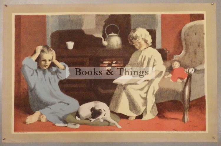 Thomas Carr: Fireside. Colour lithograph. 76 x 49.5cms (30 x 19.5 inches). School Print no. 8. 1946. Printed by the Baynard Press. This innovative series of prints by various artists was sent out to schools to help brighten classrooms.