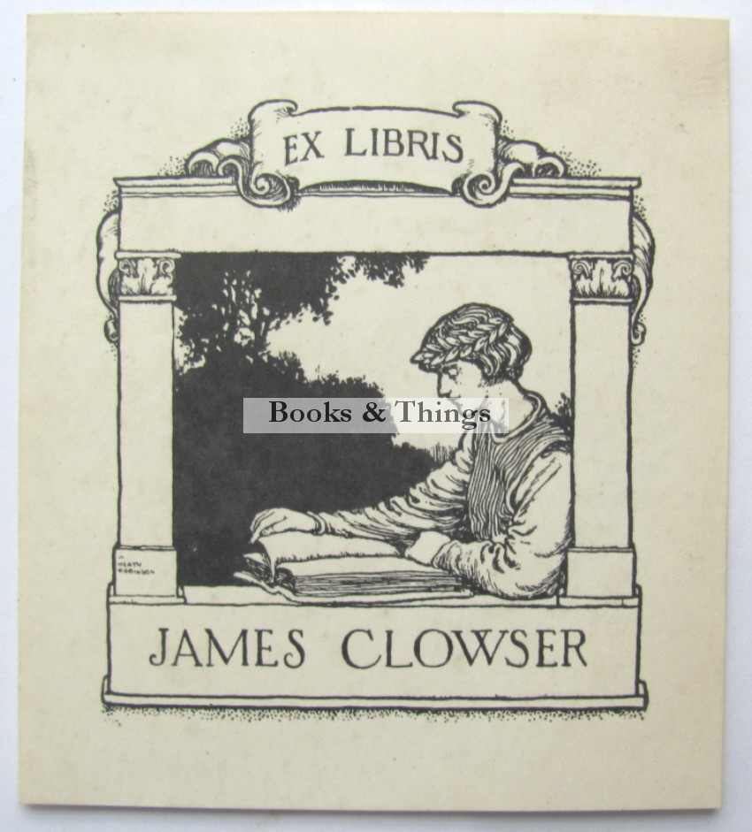 : Bookplate for James Clowser. c.1910. 90 x 80mm.