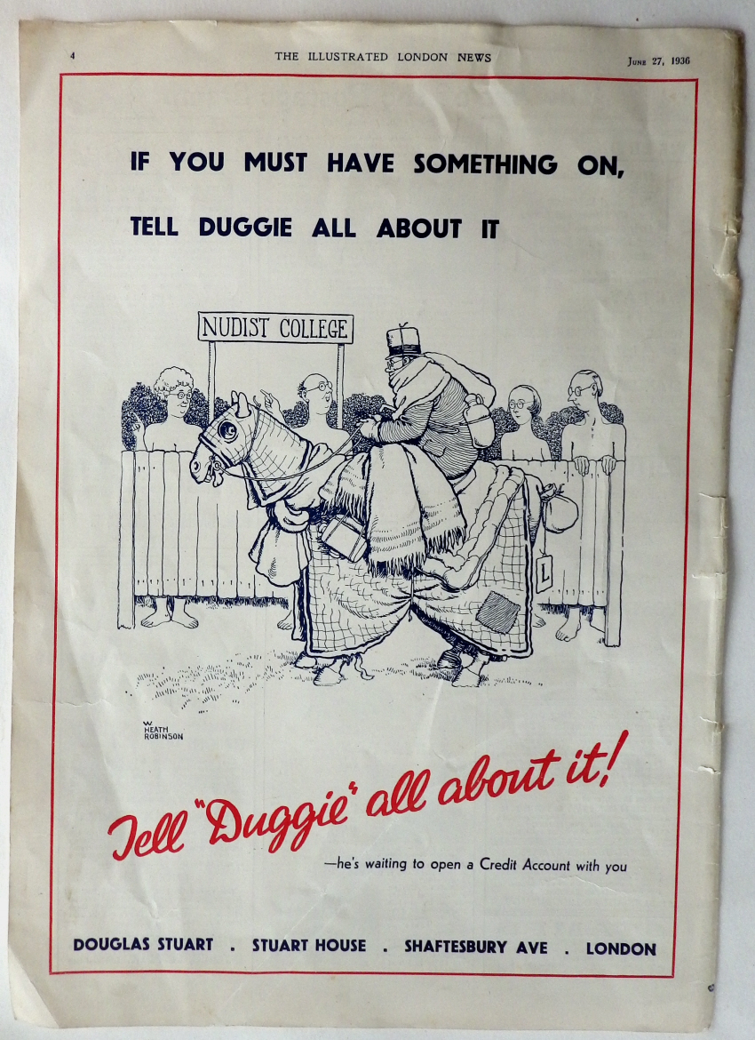 W. Heath Robinson: Original full page rear cover advert from the London Illustrated News, June 27 1936. 465 x 260mm. A little creased.