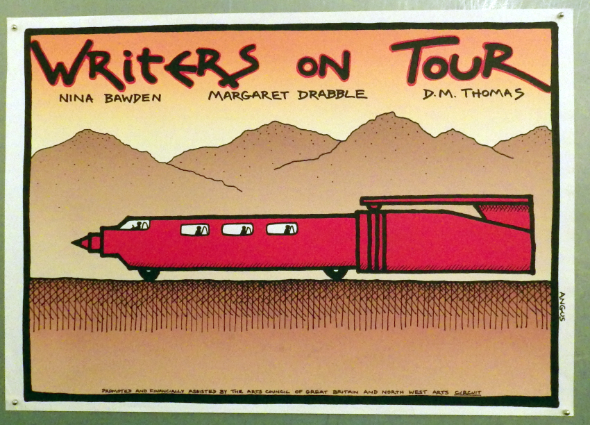 AngusWriters on Tour poster -Nina Bawden, Margaret Drabble  & D. M. Thomas.  45 x 64cms (c.18 x 25 inches). North West Arts Circuit c.1970’s.